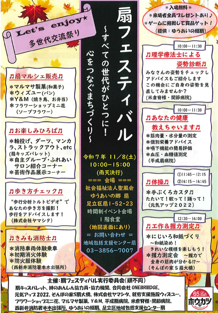 運営施設は、東京都足立区・荒川区にわたる6拠点。 聖風会は創立以来、60年以上にわたり地域に密着した介護サービスを提供しています。
