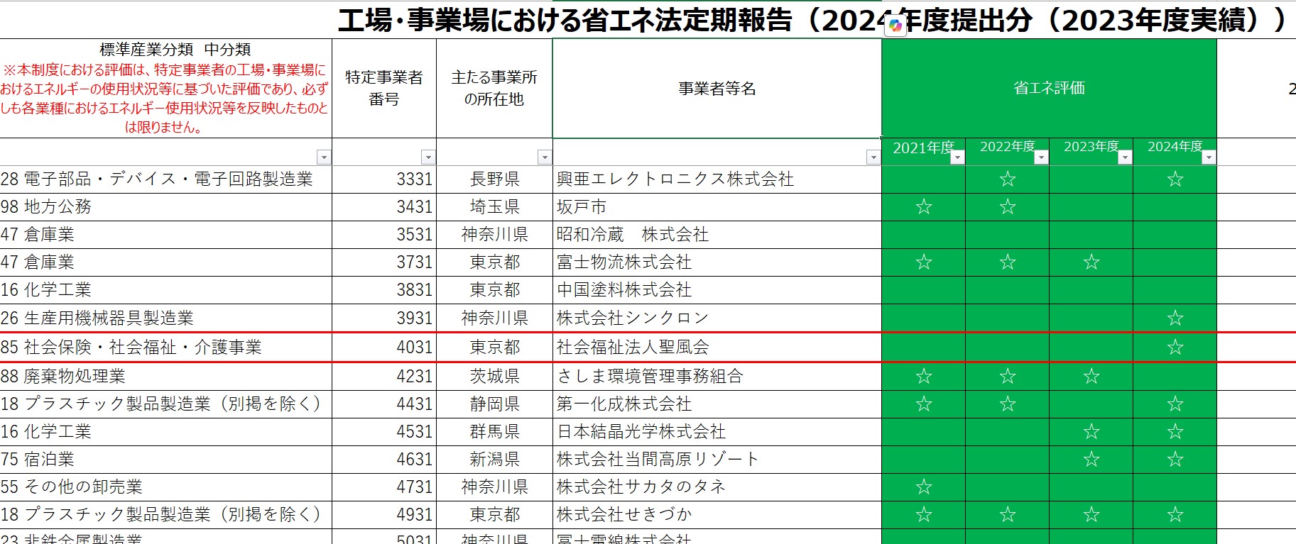 聖風会は、このたび経済産業省が実施するエネルギー使用に関する「事業者クラス分け評価制度」において、2024年度(2023年実績分)の評価で最上位である「Sクラス」を獲得しました。