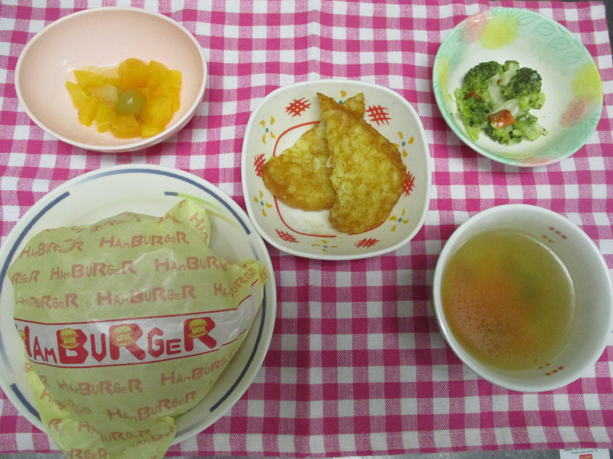 極きざみ食対象の方でもバンズが食べられる方は、ムースのハンバーグで月見バーガーを提供しました。