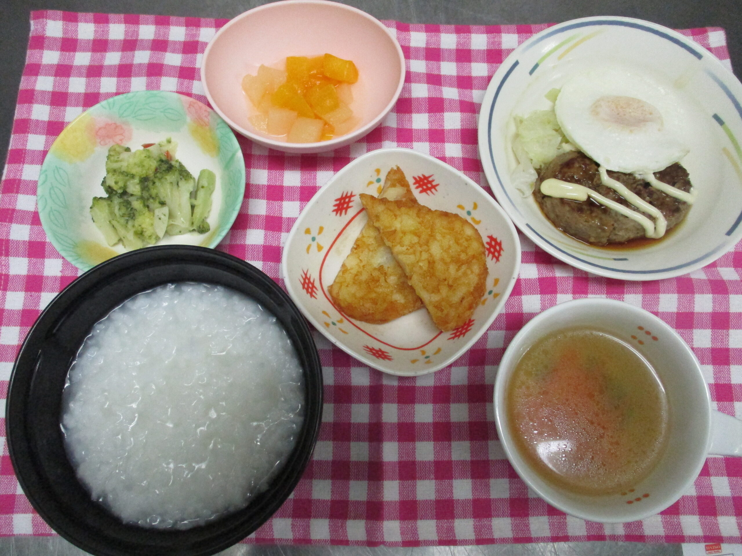 バンズではなくご飯やお粥を召し上がるの方には月見ハンバーグを提供していたため、主食の上に乗せて、ロコモコ丼風にして召し上がっている方もいらっしゃいました。