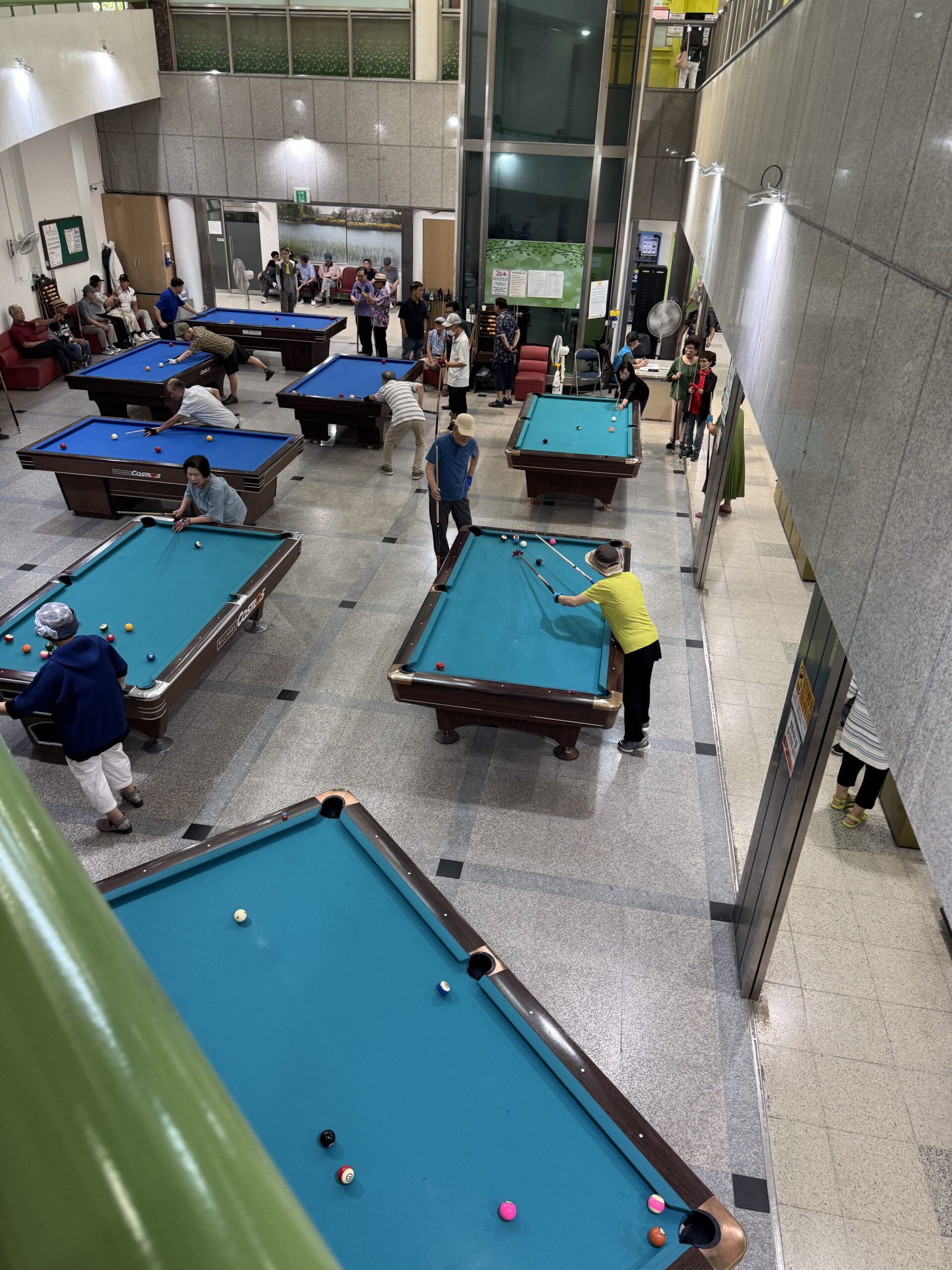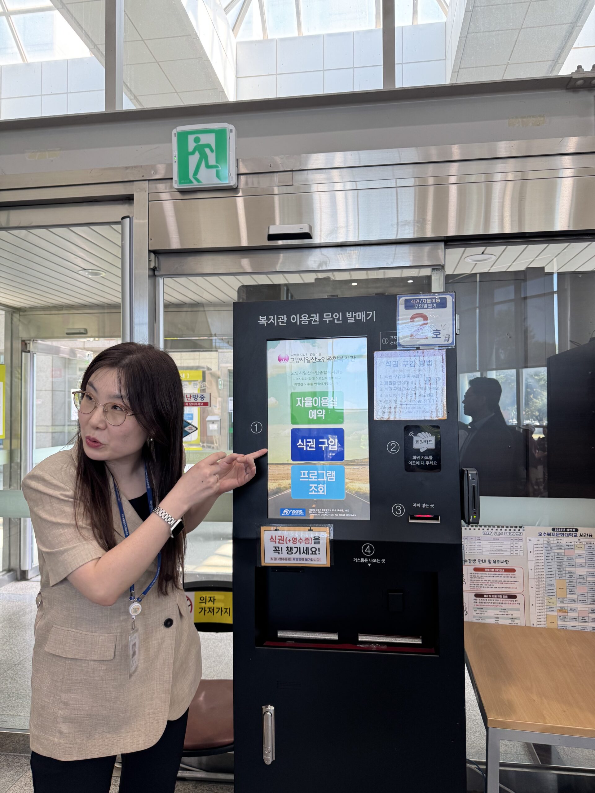 館内にはエアロビクス、語学、ビリヤード、書道、囲碁、卓球、電子機器の使い方など多彩なプログラムが用意されており、利用者は好きな時間に機械で申込むことができます。
