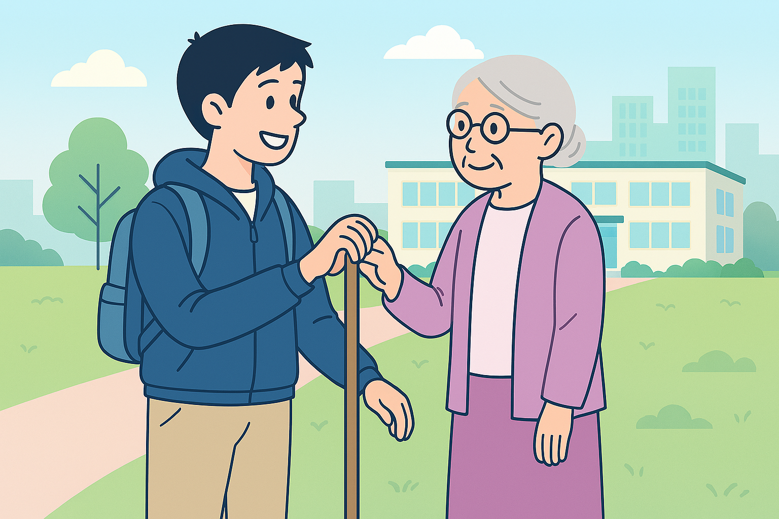 第4回は番外編として、市川瑛大職員が母校「東京都立赤羽北桜高等学校」で培った学びを活かし、聖風会での成長を語るインタビュー。高校での実習経験や新人研修での気づき、先輩職員の支えを通じて介護職として歩む姿を紹介します。