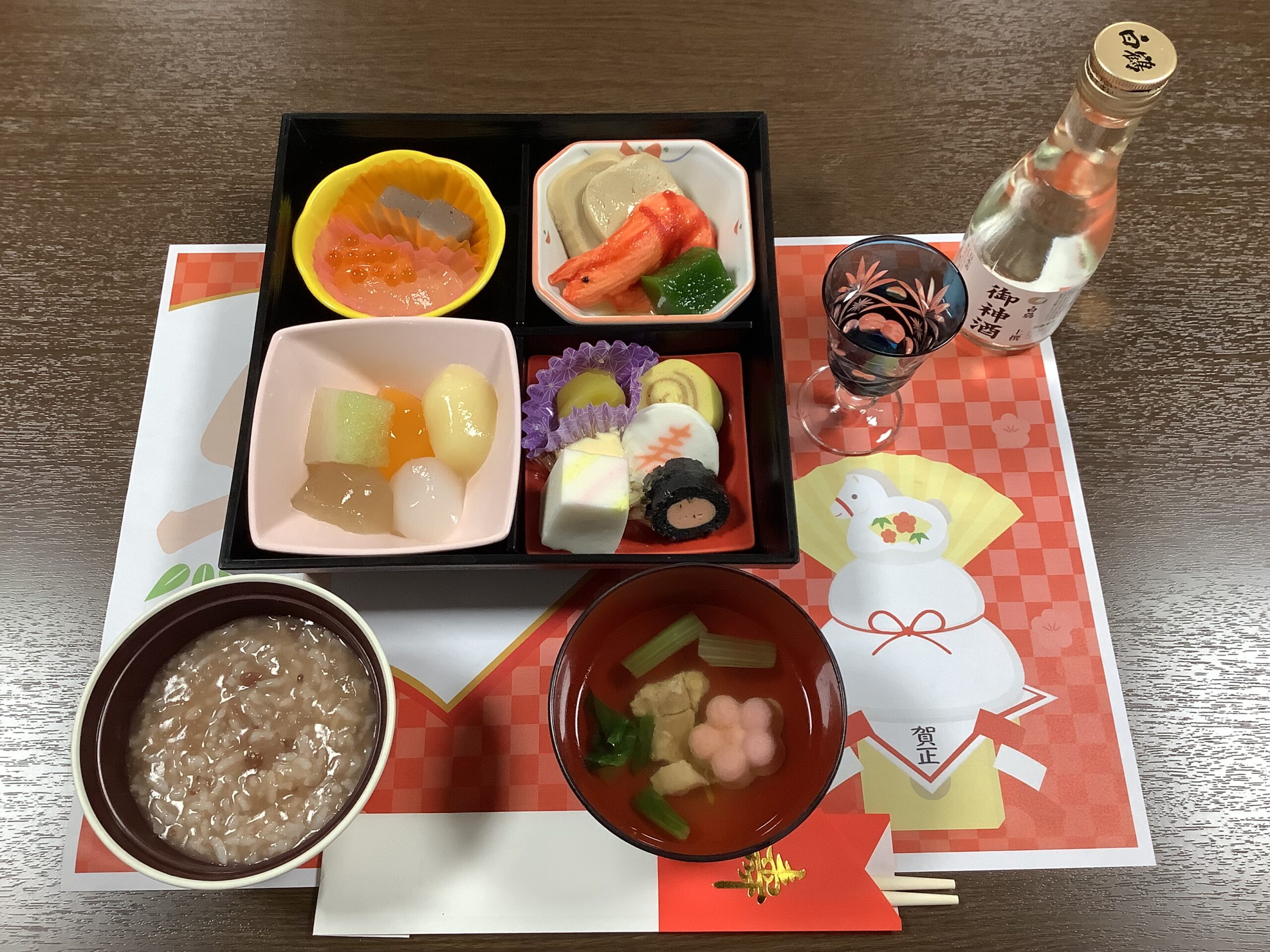 元旦は、おせち料理とお屠蘇で新年のお祝いをしました。