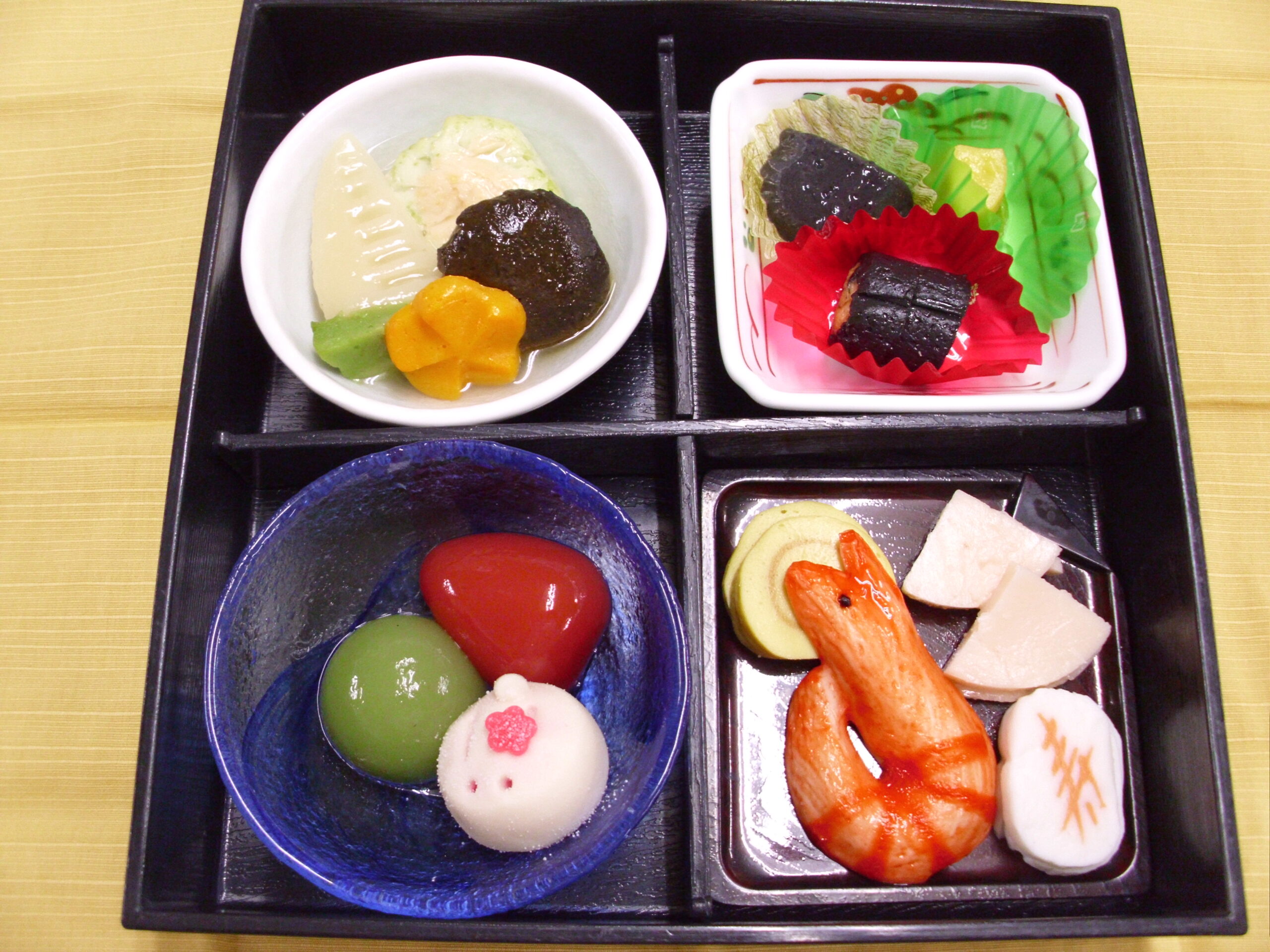 松花堂弁当に縁起物を詰め込んで新年をお祝いしました。